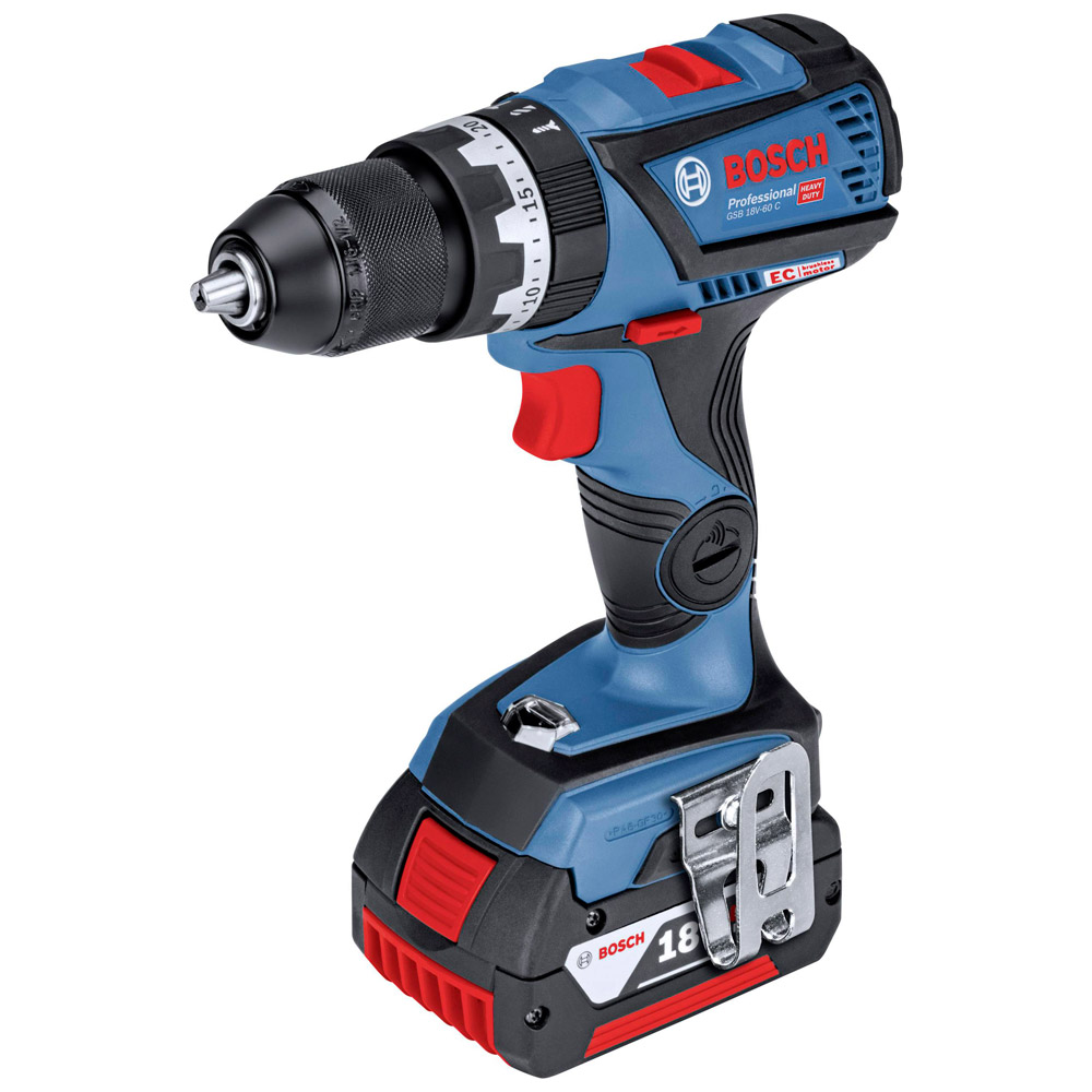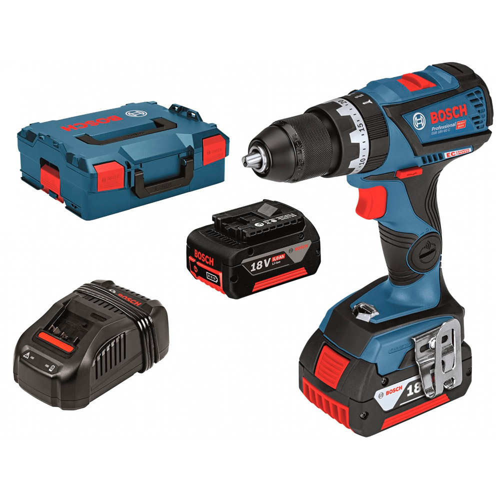 Burghiu cu impact fara fir Bosch GSB 18 V-60 C 2x5.0Ah, 06019G2100